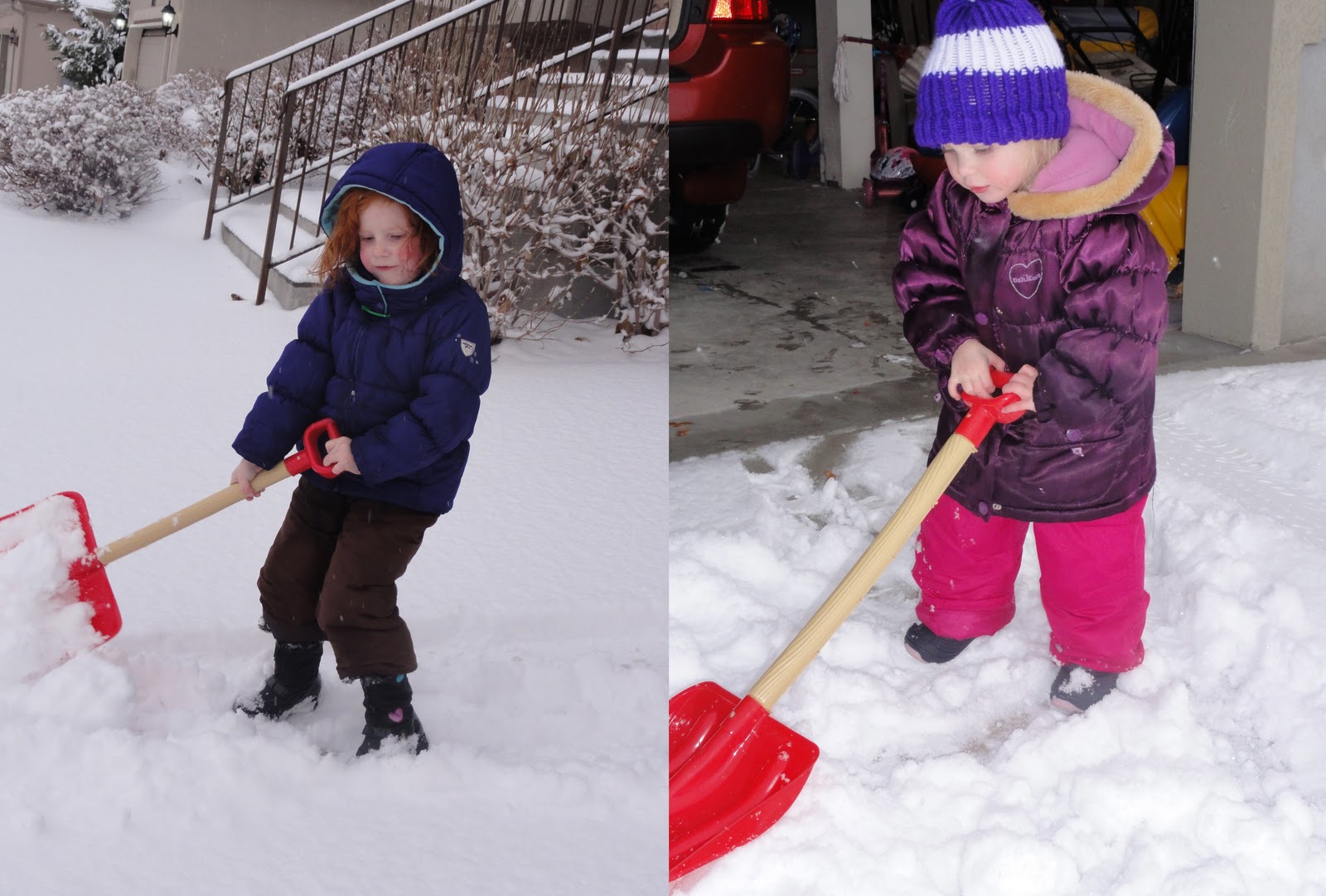 It looks like our snow paintings brought some snow to us.  We've been out shoveling and sledding.