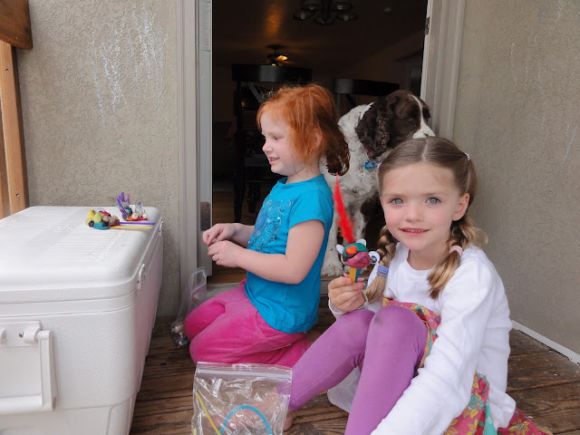 Since Red Fish is so obsessed with games, I've been lining up little games that I plan to use as part of New Fish's Montessori inspired preschool next year. Red Fish used her quiet time to explore them today. I made matchable noise makers to explore hearing. They have rice, beans, BBs, coins, rice etc. inside two eggs. The girls LOVE them. I might need to make more because it is getting too easy for them already. Red Fish also spent her time matching the stack of fabric swatches I made a few weeks ago. I love hearing her describe them to herself. Then I put post its with numbers between 1 and 20 in cupcake trays and she counted buttons into them. It kept her busy for awhile today since she wasn't in the mood to play.